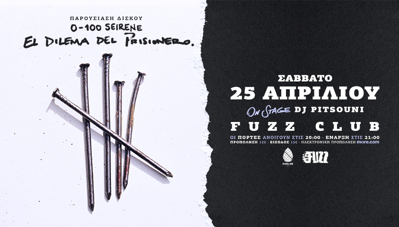 Το Σάββατο 25 Απριλίου, η 0-100 σειρένε, παρουσιάζει τον καινούριο της δίσκο 'El dilema del prisionero' στον χώρο του Fuzz. Η Dj Pitsouni στα decks. Είναι το δίλημμα του φυλακισμένου, […]