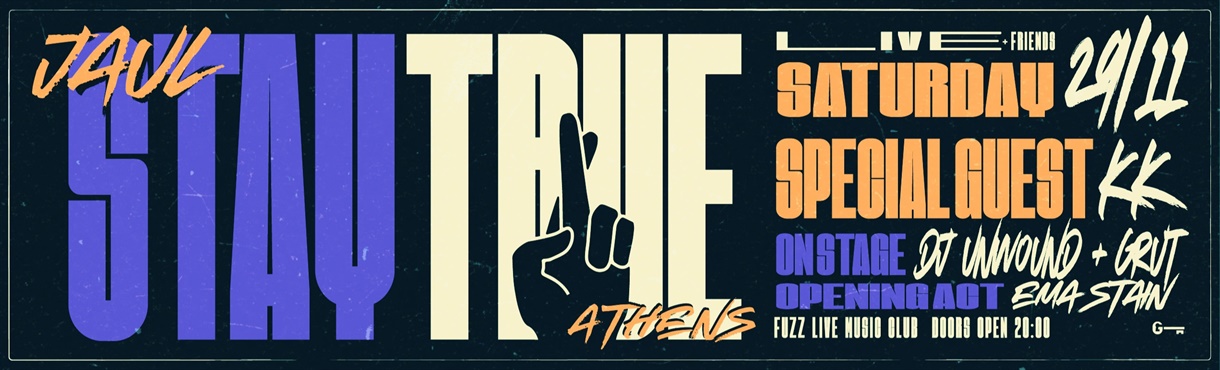 Μετά την περσινή sold out συναυλία του, ο Jaul επιστρέφει και πάλι στο Fuzz Club για μια μοναδική βραδιά. Stay True || Athens On Stage: DJ Unwound + Grut Special Guest: KK + Friends Opening Act: Ema Stain Οι πόρτες ανοίγουν στις 20:00 Η συναυλία ξεκινάει στις 21:00 Προπώληση: 12 € Εισιτήρια στην πόρτα: 15 € Εκτέλεση Παραγωγής: […]